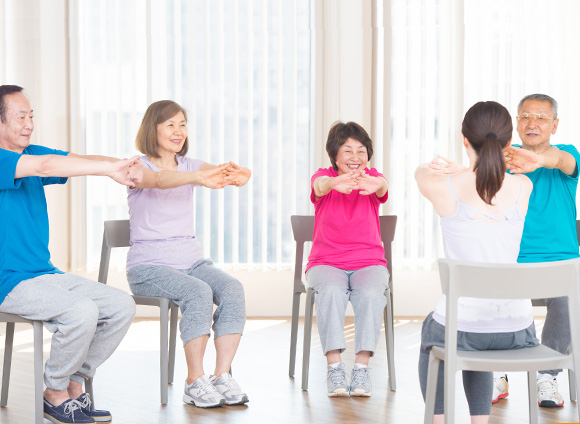 一般的な筋力トレーニングに見られがちな、心拍数や血圧の強制的な上昇がなく、身体に優しい有酸素運動マシーンを使用。自然に血液循環が促進され筋力も鍛えられるので、ご高齢の方にも安心してご利用いただけます。